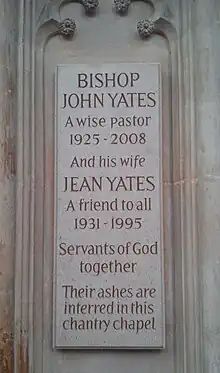 John Yates (17 April 1925 – 26 February 2008) was an Anglican bishop in the Church of England. He was a bishop for 22 years, serving as the Bishop of Whitby from 1972 to 1975, the Bishop of Gloucester[1] from 1975 to 1992 and the Bishop at Lambeth from 1992 to 1994.