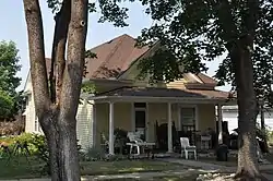 It is a one-and-half-story cottage built during a period of architectural transition; it is sort of like a Queen Anne-style cottage in its massing and fenestration, but it includes more elements suggestive of Colonial Revival style. These are: "shallow pitched rooflines, horizontal orientation, prominent porches and clean, unembellished lines." The house has an open front porch and an enclosed rear porch.[2]