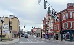 Johnson City Historic District is a national historic district located at Johnson City, Broome County, New York. It encompasses 183 contributing buildings and 1 contributing site in a mixed, residential, commercial, and industrial core of Johnson City. It developed between about 1888 and 1966, and includes notable examples of Romanesque Revival, Gothic Revival, Colonial Revival, and Streamline Moderne style architecture. Located in the district are the previously listed Goodwill Theatre, United States Post Office, and Your Home Library. Other notable contributing resources include the Endicott-Johnson Athletic Association East Branch Recreational Center (1947), St. James Roman Catholic Church Complex (1914-1950), Ash Block (c. 1901), Tacoma Block (1892, 1945), Rich Block, Dawson Block (1898-1899), Woolworths (c. 1937), Men's Quality Shop (1966), Red Robin Diner (1950, 1959), Thompson Hall (1951), Sarah Jane Johnson Methodist Church (1927), Charles F. Johnson, Jr., House (1919), Endicott-Johnson's Pioneer Annex (1916), Endicott-Johnson's Jigger Factory (1926), Endicott-Johnson's Sunrise Building (1929), Eagle Felt Mill (1898), Ansco Factory and Gate House (1947), Endicott-Johnson's Medical Facility (1918), Endicott-Johnson's Victory Factory (1919-1920), Endicott-Johnson's New Toe Box Factory (1914), Endicott-Johnson's Firehouse (1916), and the Village Hall and Fire Station (1899).[2]
