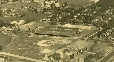 When the condition of the existing College Park Stadium (located in the northeast corner of Hampton Park) became so poor as to be unserviceable,[4] the city of Charleston chose to construct a new sports stadium just south of the new campus of The Citadel, on Hagood Avenue. The new stadium was opened October 15, 1927, with a football game between The Citadel and Oglethorpe.[5] The original stadium seated 10,000 fans and was oriented east–west, perpendicular to the current layout.