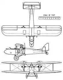 The fuselage had a welded steel tube structure of rectangular section, though with raised upper decking. There were two open cockpits in tandem with a port side, lockable door for access to the rear seat under the upper wing. The aircraft could be flown from either seat as dual, demountable controls were fitted. The upper wing was attached centrally to the fuselage by multiple cabane struts. Behind the wing the fuselage tapered to the tail, also of welded steel construction. Its rectangular plan tailplane was mounted on top of the fuselage and carried a narrow chord elevator. The tailplane also carried small endplate fins with much larger, curved, balanced rudders, placed directly in the slipstream of the engines to enhance low speed rudder authority.[1]