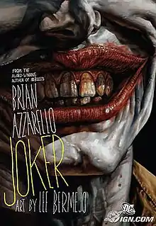 Joker is an American graphic novel published by DC Comics in 2008. Written by Brian Azzarello and illustrated by Lee Bermejo, it is based on characters from DC's Batman series, focusing primarily on the title character. It is a unique take on the Batman mythos, set outside regular continuity and narrated by one of the Joker's henchmen. The miniseries Batman: Damned is a stand-alone sequel to the graphic novel, with the miniseries incorporating certain details, settings, and designs that hint at the two stories sharing a connected narrative.[1]