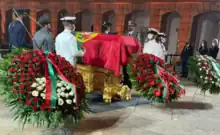 On Sunday 12, September, Sampaio's state funeral was held at Jerónimos Monastery and was attended by the highest national institutions, including UN Secretary-General and former Prime Minister António Guterres. Also present were foreign leaders such as the King of Spain Felipe VI, the Prime Minister of Cape Verde Ulisses Correia e Silva, the President of the Parliament of East Timor Aniceto Guterres Lopes, and delegates of the Community of Portuguese Language Countries.[59] Later, in a private ceremony, Sampaio was buried at Alto de São João Cemetery, Lisbon.[60]