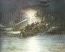 When the Chilean squadron appeared in Callao, from April 10, 1880, the port was blocked, the square was cut off in its communications by sea, and this part of the coast was subjected to enemy surveillance. When the bombardments began on April 22, José Gálvez actively participated in the defense. On the night of May 24, he was assigned to patrol duty in the Callao roadstead, aboard the Independencia launch. After three hours of patrolling, when he was returning to his base, at two in the morning on the 25th, he engaged in combat with the Chilean boats Guacolda and Janequeo. Under these circumstances, the Independencia cannon broke down and the machine gun broke down. The Independence carried a 100-pound gunpowder torpedo. In an instant, the medical practitioner Manuel S. Ugarte (Second in Command), taking advantage of the agility and strength that the sport had given him, loaded and threw the device onto the deck of the enemy vessel,[2] but not before having lit it after cutting the fuse with the help of Corporal Emilio San Martín; then Gálvez, according to what was simultaneously agreed, fired on the torpedo, getting it to explode after the second shot. As a result, the Janequeo sank and the Independencia capsized. Ugarte and San Martín (closer to the explosion) died instantly, while the explosion hit Gálvez in the air and pushed him into the sea, being rescued by the sailor Pedro Villanueva, who kept him afloat. Shortly after the other Chilean boat arrived, the Guacolda, which picked up the survivors.