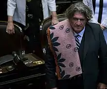 Ramón wearing a blanket at his swearing-in ceremony as national deputy on 6 December 2017.