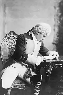 From 1880, he worked with Ernst von Possart at the National Theatre Munich and became one of the favourite actors of King Ludwig II of Bavaria appearing in private performance exclusively for the monarch's delight.[2] In the summer of 1881, Ludwig II undertook a joint journey with Kainz to Lake Lucerne, where the relationship cooled.[3] Three years later, Kainz joined the ensemble of the newly established Deutsches Theater in Berlin, where he gained immense popularity with performances of Hamlet, Richard II, Schiller's Don Carlos and as Franz Moor in The Robbers.