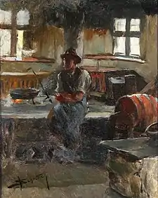 Josef Schretter (18 March 1856, Inzing - 18 March 1909, Innsbruck) was painter from Austria-Hungary; specializing in portraits and genre scenes.