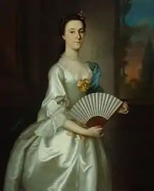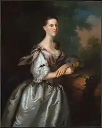 He seems to have been the son of a painter, and to have had a studio in Boston in 1750–1765; among his patrons were many important early American families, including the Apthorps, Amorys, Bulfinches, Lowells, Ewings, Saltonstalls, Winthrops, Winslows and Otises of Boston. Blackburn spent time in Bermuda (1752–1753), Newport (1754), Boston (1755–1758), and Portsmouth (1758–1762). In late 1763 he returned to London and painted portraits in southwestern England, Wales, and Dublin between 1768 and 1777.[2] Approximately one hundred fifty of Blackburn's portraits survive.[2] He excelled at painting textiles (i.e., representing the shimmer of silks, the texture of laces, and the folds of fabrics).[2]