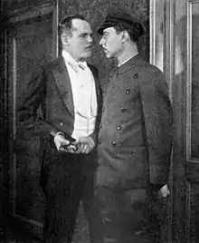 Calleia had his first real role as a villain in Small Miracle, and his success in the play was responsible for his move to Hollywood.[25] Calleia's contract with Metro-Goldwyn-Mayer permitted him a hiatus of six months a year, to continue his stage work.[26] He was not new to motion pictures—he had made three feature films on the East Coast[27]—but when MGM put Calleia under contract, they promoted his first film, Public Hero No. 1 (1935), as his screen debut.[28] Calleia's portrayal of the gunman was listed by film critic Andre Sennwald of The New York Times as one of the year's 10 best male performances.[29][30]