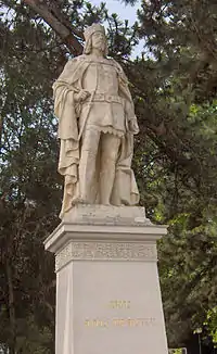 - The marble statue of Rudolph IV on the Elizabeth bridge over the Danube Canal, Vienna, one of the eight statues now relocated to the grounds of the Rathaus, Vienna