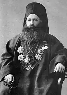 Exarch Joseph I (also known as Iosif I, secular name Lazar Yovchev, Bulgarian: Лазар Йовчев; May 5, 1840, Kalofer, Ottoman Empire – June 20, 1915, Sofia, Bulgaria) was a Bulgarian Exarch from 1877 to 1915.[1] He has great merits for preserving the unity of the Bulgarian Orthodox Church and for the Bulgarian educational and ecclesiastical work in Macedonia and Thrace, which remained in the Ottoman Empire after 1878.