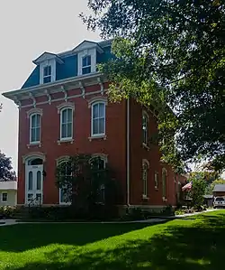 The Joseph P. Mentzer House is a historic building located in Marion, Iowa, United States. An Ohio native, Mentzer made his fortune as a merchant and as a banker in Marion.[2] After his business partnership dissolved in 1865, he turned his attention to a 170-acre (69 ha) farm he bought on the edge of town. He built this 2½-story Second Empire house in 1868. It features a mansard roof with bracketed eaves and a single-story rear wing. The house remained in the Mentzer family into the 1930s. At one point it had been converted into three apartments. It was listed on the National Register of Historic Places in 1982.[1]