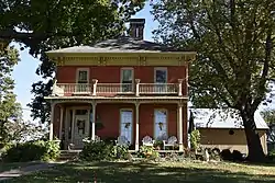 The Joseph Ross House is a historic house located at 5200 Passfield Road in Rochester, Illinois. Joseph Ross built the two-story Italianate house in 1868. The brick house has an L-shaped plan with a low hip roof. Two porches run along the house, one at the front entrance and one along the rear ell. A bracketed and dentillated cornice, the house's main decorative feature and a key element of the Italianate style, encircles the roof line. The house is the best-preserved brick Italianate house in the Rochester vicinity.[2]