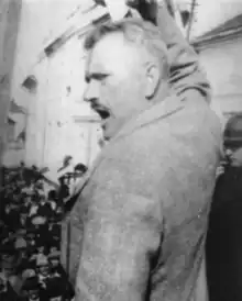 The NDH banned the HSS in June 1941 and detained Maček in the village of Kupinec under house arrest.[8] In summer of 1941, Torbar met Pavelić and informed him that the HSS would not object to Ustaše holding on to power as long as the Axis powers have the upper hand, provided that there are "smart politics" in place and "compromised Ustaše are removed". In return, Pavelić promised reforms and the role of "tolerated opposition" for the HSS, but none of the promises were kept.[9] Instead, in late summer or early autumn of 1941, after an envoy of the Nazi Germany Plenipotentiary General to the NDH Edmund Glaise-Horstenau visited Maček in Kupinec to see if Maček would replace Pavelić, the situation deteriorated for the HSS. Afraid that Germany or Italy would install Maček as head of the NDH or, the Ustaše ordered that Maček be taken to the Jasenovac concentration camp on 15 October. He was returned to house arrest in Kupinec in March 1942.[8]