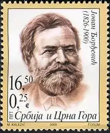 Jovan Đorđević (13 November 1826 – 9 April 1900) was a Serbian writer, dramatist, Minister of Education and the co-founder of the Novi Sad Serbian National Theatre in 1861, the National Theatre in Belgrade in 1868 and the Academy of Dramatic Art (Serbian: Glumačka akademija) in 1870. He is most famous for writing the lyrics to the Serbian National anthem Bože pravde in 1872. He was also a member of Matica Srpska.