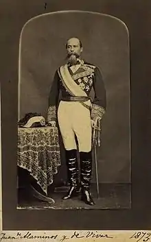 There is not much known about the early career of Alaminos other than that he was from Cuéllar, and that he was born on 27 October 1813. His military career began with his participation in the First Carlist War (1833–1839). He then served under General Juan Prim, 1st Marquis of los Castillejos during the Hispano-Moroccan War (1859–60).[1] In 1871, he was elected as Senator of Burgos, and the following year (1872) as Senator of Córdoba.[2] Before the abdication of King Amadeo I of Spain, Alaminos was sent to assume the position of Governor-General of the Philippines on 24 January 1873. He was the first Governor-General to arrive and depart from the Philippines on a steamship.[3] During his term, Alaminos fought against the Archbishop of Manila, Gregorio Melitón Martínez, keeping the conflict between the colonial government and the church ongoing. It was during the administration of former Governor-General Carlos María de la Torre y Navacerrada when the conflict was rekindled. In around 1870, the governor-general appointed Luis Alcala Zamora as Bishop of Cebu but it was not approved by Archbishop Melitón Martínez.[4] Alaminos was replaced by an interim governor in 1874, during the administration of President Francisco Serrano, 1st Duke of la Torre. He died in 1899. During his administration in the Philippines, Alaminos, Pangasinan and Alaminos, Laguna were named in his honor.[5][6]