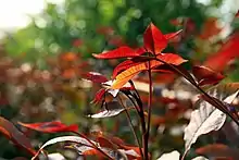 Juglans regia 'Zijing' (Chinese: 紫京彩叶核桃树,紫京核桃树) is a cultivar of walnut developed in Beijing, China.[1] IT was developed frommother trees of purple-leaved walnut, which was found in the mountains of Qingshui, Mentougou District, China in 1998.[2]