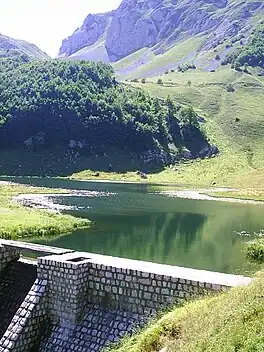 Jugovo Lake (Serbian: Југово jезеро, romanized: Jugovo jezero), also known as Borilovačko Lake (Serbian: Бориловачко jезеро, romanized: Borilovačko jezero) is a lake of Republika Srpska, Bosnia and Herzegovina. It is located in the municipality of Zelengora. The lake is about 250 metres (820 ft) long and 100 metres (330 ft) wide and contains Californian Trout.[1]