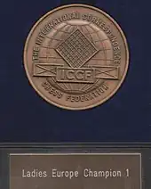 In 1995, Hund won the first place at European Ladies Championship.[1] Having won the first European Fernschach Women's Championship, which lasted over 11 years, Hund was awarded the title of the “1st European Champion” at the ICCF Congress (World Chess Federation) in Riga in 1998.[3] In 1999, Hund received the Golden Badge of Honor from the German Fernschachbund (BdF).[3]