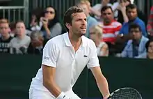 Julien Henry Guy Benneteau-Desgrois[1] (French pronunciation: [ʒyljɛ̃ bɛnto];[2] born 20 December 1981) is a French retired professional tennis player. His career-high singles ranking is ATP world no. 25, which he reached in November 2014. He formerly resided in Boulogne-Billancourt and now lives in Geneva. Benneteau did not win a singles title, although he finished as runner-up in ten ATP tournaments (holding match point in the 2013 Kuala Lumpur final). He reached the quarterfinals of the 2006 French Open and the semifinals of the 2014 Cincinnati Masters and 2017 Paris Masters (the latter as a wildcard). Benneteau also had success in doubles, winning the bronze medal in men's doubles at the 2012 London Olympics (partnering Richard Gasquet) and the 2014 French Open men's doubles title with fellow Frenchman Édouard Roger-Vasselin, thus becoming the first team from France to win the men's doubles discipline in 30 years (after Yannick Noah and Henri Leconte did it in 1984). He reached his career-high doubles ranking of world no. 5 in November 2014. Benneteau intended to retire from professional tennis after the 2018 US Open.[3] However, due to an injury crisis he was asked by captain Yannick Noah to represent France in the Davis Cup semifinal in September 2018 against Spain. Benneteau teamed up with Nicolas Mahut to secure a decisive victory that took France to an unassailable 3–0 lead against Spain and into the final of the 2018 Davis Cup.[4] Benneteau subsequently played several further events in singles and doubles, concluding his professional career on home soil at the Paris Masters.