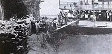 In May of 1908 there was a civil conflict between Arana's company and David Cazes, the British consul in Iquitos and the owner of the Iquitos Trading Company. Both firms had a claim to an estate named Pensamiento, as its owner had recently died and owed money to both companies. Apparently Arana was interested in this property because it was the best route of escape for natives fleeing from the Putumayo towards the Napo River.[26] A few Huitoto natives escaped to Pensamiento, where they protested against their treatment to previous owners brother, who brought that issue to Cazes. According to Cazes, these natives were "dreadfully scarred from flogging" and he tried to have them admitted as evidence in court at Iquitos, however the local prefect "Zapata and the Court had these Indians sent away" and the whole matter was covered up.[27] Cazes managed to sell all of the rubber on the property before a commissario named Amadeo Burga arrived to seize the estate for Arana. Afterwards, the courts issued an arrest order for Cazes and soldiers were sent to his house, which was also the British consulate.[28][lower-alpha 5] Cazes was given an ultimatum by prefect Zapata, which was to either pay a £800 fee and surrender the claim to Pensamiento, or else his house would be invaded by authorities who would then arrest him, so Cazes decided to pay the money to the courts.[29] The natives who ran away to Pensamiento were collected by the commissario Burga and taken back to the Putumayo estates.[28]