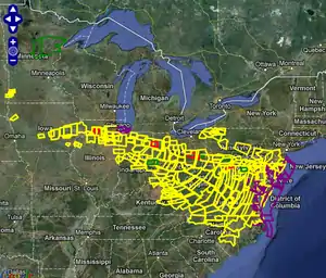 Areas affectedUnited States Midwest, United States Mid-Atlantic