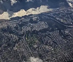 Residential growth in San Mateo County accelerated after the 1906 San Francisco earthquake, spurred by a City of San Bruno policy offering 14-acre (0.10 ha) lots with substantial tax benefits if a residence was built there within six months.[2]:4 The modern park site is the remnant of a ridge of sandstone, part of the Franciscan Complex; most of the ridge was removed for building materials by a quarry which operated until the mid-1950s.[2]:4