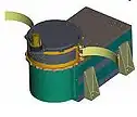 The orbits were carefully planned in order to minimize contact with Jupiter's dense radiation belts, which can damage spacecraft electronics and solar panels, by exploiting a gap in the radiation envelope near the planet, passing through a region of minimal radiation.[8][43] The "Juno Radiation Vault", with 1-centimeter-thick titanium walls, also aids in protecting Juno's electronics.[44] Despite the intense radiation, JunoCam and the Jovian Infrared Auroral Mapper (JIRAM) are expected to endure at least eight orbits, while the Microwave Radiometer (MWR) should endure at least eleven orbits.[45] Juno will receive much lower levels of radiation in its polar orbit than the Galileo orbiter received in its equatorial orbit. Galileo's subsystems were damaged by radiation during its mission, including an LED in its data recording system.[46]