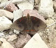 - ↑ Lalonde, Melanie M.L.; Marcus, Jeffrey M. (2019). "Getting western: biogeographical analysis of morphological variation, mitochondrial haplotypes and nuclear markers reveals cryptic species and hybrid zones in the Junonia butterflies of the American southwest and Mexico". Systematic Entomology. 44 (3): 465–489. doi:10.1111/syen.12335. S2CID 91932338.