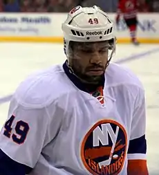 On April 11, 2014, at the age of 32, Johnson made his long-awaited NHL debut against the New Jersey Devils at the Prudential Center.[3]