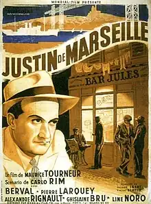Justin de Marseille is a 1935 French crime drama film directed by Maurice Tourneur and starring Antonin Berval, Pierre Larquey and Alexandre Rignault.[1][2] It was shot at the Joinville Studios of Pathé-Natan in Paris and on location around Marseille. The film's sets were designed by the art director Lazare Meerson.