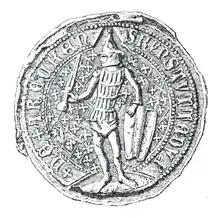 Kęstutis (Latin: Kinstut, Lithuanian pronunciation: [kæːsˈtutɪs]; c. 1297 – 3 or 15 August 1382) was the Grand Duke of Lithuania.[1] He was the Duke of Trakai and governed the Grand Duchy of Lithuania, 1342–1382, together with his brother Algirdas (until 1377), and with his nephew Jogaila (until 1381).[1]