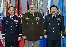 In April 2019, Yamazaki was appointed by then-Prime Minister Shinzo Abe as the Chief of Staff, Joint Staff, the JSDF's highest position. As the Chief of the Joint Staff, he continued his approach on nourishing Japan's role in the Asia-Pacific and abroad, such as the United States, where he met with Chairman of the Joint Chiefs of Staff General Mark A. Milley; in Israel, where he met Lieutenant General Aviv Kochavi;[5] in South Korea, where he met two Chairmen of the Joint Chiefs of Staff General Park Han-ki and General Won In-choul,;[6] in India, where he met with General Bipin Rawat,[7] and other countries such as Brazil, where he met with the Commander of the Brazilian Army Army General Edson Leal Pujol.[8] General Yamazaki also vowed to strengthen Japan's military capabilities and ensuring that Japan can defend its sovereignty in the East China Sea, particularly in the Senkaku Islands, as the country faces territorial disputes and incursions from China's China Coast Guard, the People's Liberation Army Navy, and the People's Liberation Army Air Force.[9] Yamazaki also vowed to strengthen Japan's presence in the East China Sea and in the South China Sea, and maintain the status quo in securing the Taiwan Strait, as Taiwan and China continues to escalate its tensions amidst a possible invasion of Taiwan by the People's Liberation Army.[6]