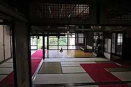 Facing south on the Saigoku Highway, the honjin consists of two main buildings with tiled roofs, three kura storehouses, one barn, and one tea ceremony room. The site is still under private ownership by the original family, and in principle reservations are required for tours, although special public exhibitions are held twice a year, during which no reservations are required.[2]