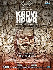 Kadvi Hawa (transl.Bitter wind) is a 2017 Indian Hindi-language drama film, directed by Nila Madhab Panda and produced by Panda, Drishyam Films and Akshay Parija. Based on the theme of climate change, the film stars Sanjay Mishra, Ranvir Shorey and Tillotama Shome in lead roles. It was released on 24 November 2017.[2] It also got a Special Mention at the 64th National Film Awards held on 7 April 2017. The film is presented by Drishyam Films.[3]