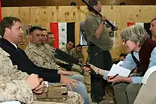 Weston takes a question during a pre-election press conference held in Fallujah, Iraq, on December 14, 2005, during his time as a State Department employee.