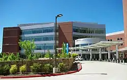 When all phases are completed, the campus will include a nearly 550,000-square-foot (51,000 m2) parking structure and two other buildings totaling 262,000 square feet (24,300 m2) with the campus covering over 1,500,000 square feet (140,000 m2) on the 15-acre (6.1 ha) site.[16] Departments include surgery, intensive care, emergency, labor and delivery, neurology, orthopedics, cardiology, and allergy.[12][13] The campus also includes a public health resource center and a pharmacy.[13]