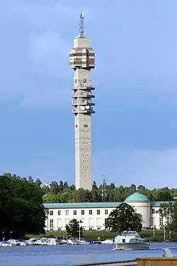 The tower used to be open to the public, with an information centre and gift shop, indoor and outdoor observation decks as well as a restaurant, but has now been permanently closed to the public since 2018 on the grounds that the security repairs would have become too expensive.[1] It was later revealed that the real cause is the threat of foreign intelligence. The fear is that a foreign power would seek to take control of important communication lines and systems of society. According to Swedish television, the Swedish security police have stated in a report in 2017 that the number of foreign intelligence companies has increased, and the tower will be closed due to the report.[2]