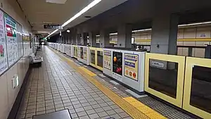 Kakuōzan Station (覚王山駅, Kakuōzan-eki) is an underground metro station located in Chikusa-ku, Nagoya, Aichi Prefecture, Japan operated by the Nagoya Municipal Subway's Higashiyama Line.[1] It is located 13.2 rail kilometers from the terminus of the Higashiyama Line at Takabata Station.