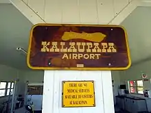 Kalaupapa Airport (IATA: LUP, ICAO: PHLU, FAA LID: LUP) is a regional public use airport of the state of Hawaii, located on the northern peninsula of the island of Molokaʻi, two nautical miles (2.3 mi; 3.7 km) north of Kalaupapa Settlement, in Kalawao County.[1] Most flights to Kalaupapa originate from Molokai Airport or from airports on the other Hawaiian islands by unscheduled air taxis and general aviation. It is also used as a cargo facility carrying goods for Kalaupapa, which has no road access from the rest of Molokai.