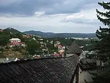 Panorama of Banská Štiavnica with Calvary in the background.