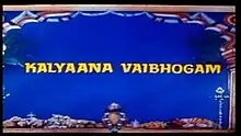 Kalyana Vaibhogam (transl. Marriage celebration) is a 1997 Indian Tamil-language romance film directed by N. Rathnam, who had previously directed the film Chellakannu (1995). The film stars Ramki, Khushbu and Sangita, with Vadivelu, R. Sundarrajan, V. K. Ramasamy, Vennira Aadai Moorthy, Vijay Krishnaraj and Haja Shareef playing supporting roles. It was released on 5 September 1997.[1] The film was a remake of the Hindi film Aaina (1993).[2]