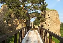 The medieval castle called Vrškamýk or just Kamýk is now a ruin. It was abandoned in the second half of the 14th century and first described as a ruin in 1569. Only a part of the inner walls has been preserved. Near the church is a lookout tower, also called Vrškamýk.[4][5]