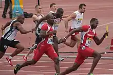 ![]() Kamil Kryński (second from right) during a relay race. | |