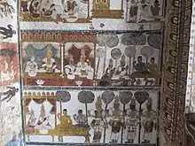 The Medieval Chola king Aditya I conquered the Pallava kingdom, including Kanchipuram, after defeating the Pallava ruler Aparajitavarman (880897) in about 890.[27] Under the Cholas, the city was the headquarters of the northern viceroyalty.[28] The province was renamed Jayamkonda Cholamandalam during the reign of King Raja Raja Chola I (9851014),[29][30] who constructed the Karchapeswarar Temple and renovated the Kamakshi Amman Temple.[30] His son, Rajendra Chola I (101244) constructed the Yathothkari Perumal Temple.[31] According to the Siddhantasaravali of Trilocana Sivacharya, Rajendra Chola I brought a band of Saivas with him on his return from the Chola expedition to North India and settled them in Kanchipuram.[32] In about 1218, the Pandya king Maravarman Sundara Pandyan (12161238) invaded the Chola country, making deep inroads into the kingdom which was saved by the intervention of the Hoysala king Vira Narasimha II (12201235), who fought on the side of the Chola king Kulothunga Chola III.[33][34] Inscriptions indicate the presence of a powerful Hoysala garrison in Kanchipuram, which remained in the city until about 1230.[35] Shortly afterwards, Kanchipuram was conquered by the Cholas, from whom Jatavarman Sundara Pandyan I took the city in 1258.[36] The city remained with the Pandyas until 1311 when the Sambuvarayars declared independence, taking advantage of the anarchy caused by Malik Kafur's invasion.[29][37] After short spells of occupation by Ravivarman Kulasekhara of Venad (Quilon, Kerala) in 13131314 and the Kakatiya ruler Prataparudra II, Kanchipuram was conquered by the Vijayanagara general Kumara Kampana, who defeated the Madurai Sultanate in 1361.[14]