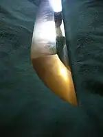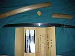 Kanenobu [兼信, 兼延, 兼言] is the name of both a Japanese swordsmith and his clan, a group that is famous for producing samurai swords, katana, wakizashi and, occasionally, spears in the style of the Mino School - Tōkaidō. The history of the family covers a period of more than 600 years. SHIZU KANEUJI was the founder in Mino and was a student of Masamune.