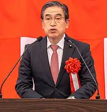 Kaneshige Wakamatsu (born August 5, 1955, in Fukushima Prefecture, Japan) is a Japanese politician and accountant who has served as a member of the House of Councillors of Japan since 2013.[1] He previously served as a member of the House of Representatives of Japan from 1993 to 2003.[2] He represents the National proportional representation block as a member of Komeito.