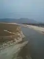 The canal system consists of a three-tier network of canals. The main canal is 34 kilometres (21 mi) long with 74 kilometres (46 mi) of secondary canals and 110 kilometres (68 mi) of tertiary canals. The first 11.5-kilometre (7.1 mi) section of the main canal is lined and has a design capacity of 10.15 m3/s (358 cu ft/s); the other sections are unlined and their capacity decreases from 7.25 to 1.75 m3/s (256 to 62 cu ft/s).[7]