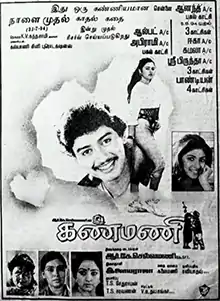 Kanmani (ⓘ) is a 1994 Indian Tamil-language romantic drama film, directed by R. K. Selvamani. The film stars Prashanth and Mohini, while Sujatha, Lakshmi and Jaishankar play supporting roles.[1]