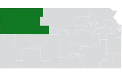 The district is located entirely within Kansas's 1st congressional district, and overlaps with the 110th, 111th, 118th, and 120th districts of the Kansas House of Representatives.[4] It borders the states of Nebraska and Colorado. At nearly 13,000 square miles, it is by far the largest legislative district in the state.[1]